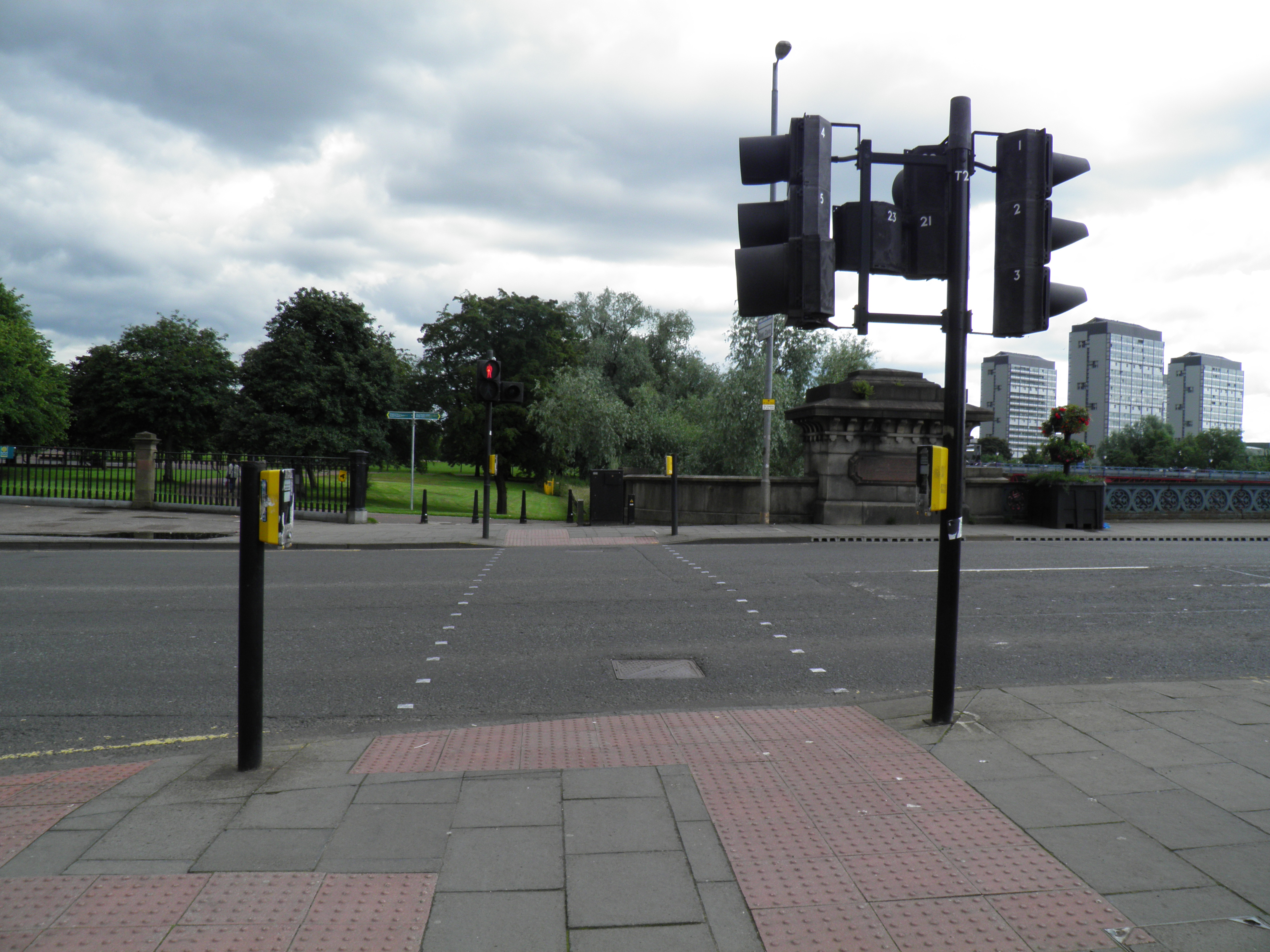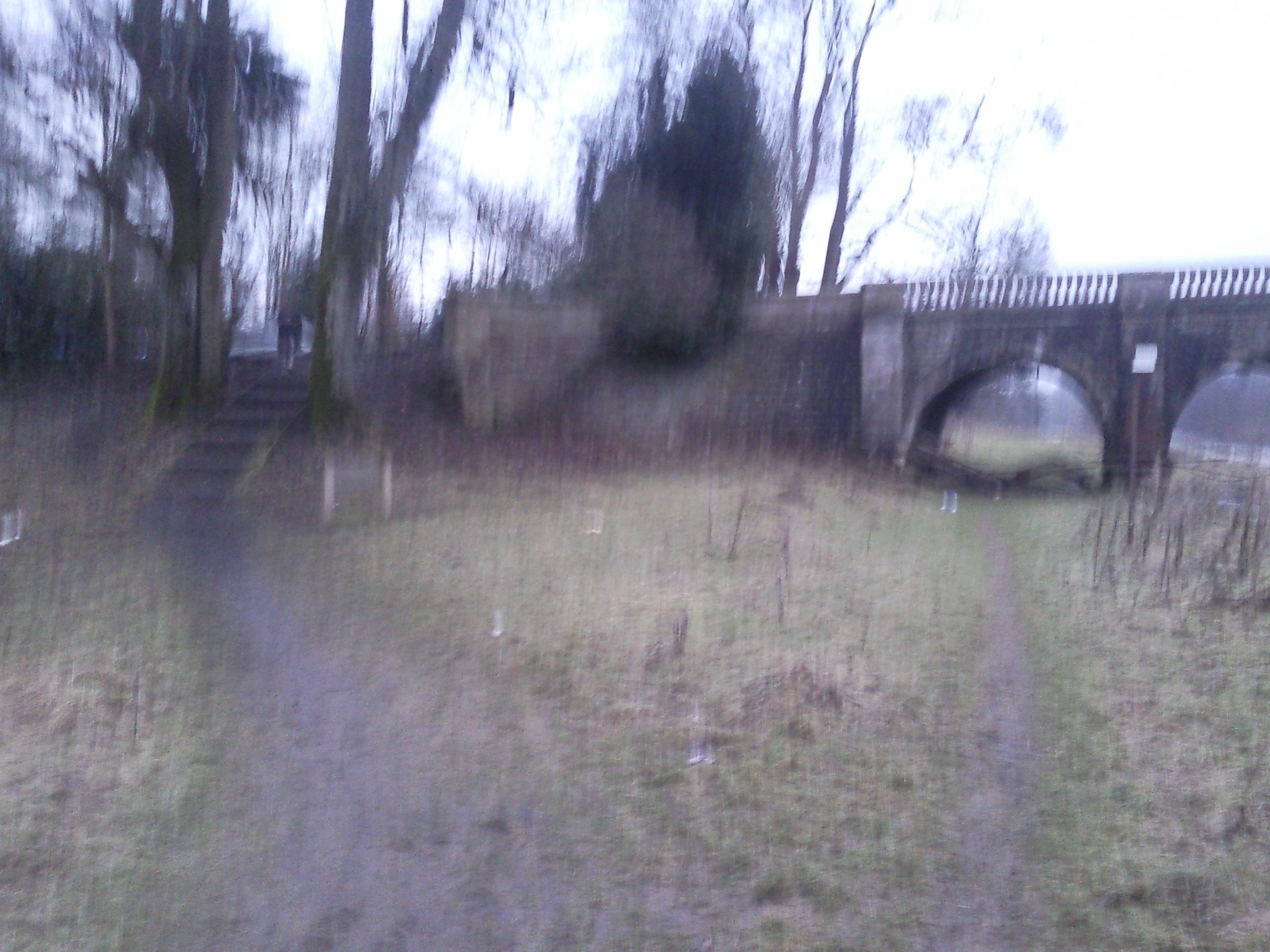 On reaching open grassed area turn Right to pass under a railway bridge. Keep straight ahead and continue to meet Glasgow Road. Turn Left and follow yellow arrows on pavement (from last years race) Pass under East Kilbride Express Way (flyover) at roundabout, 2nd exit Whistleberry Road. Continue over railway line. 1st Left under express way again. Follow pavement arrows skirting industrial estate until re joining main path and official route. At the bottom of footpath meet Bothwell Bridge, (picture below **) TAKE CARE crossing bridge.