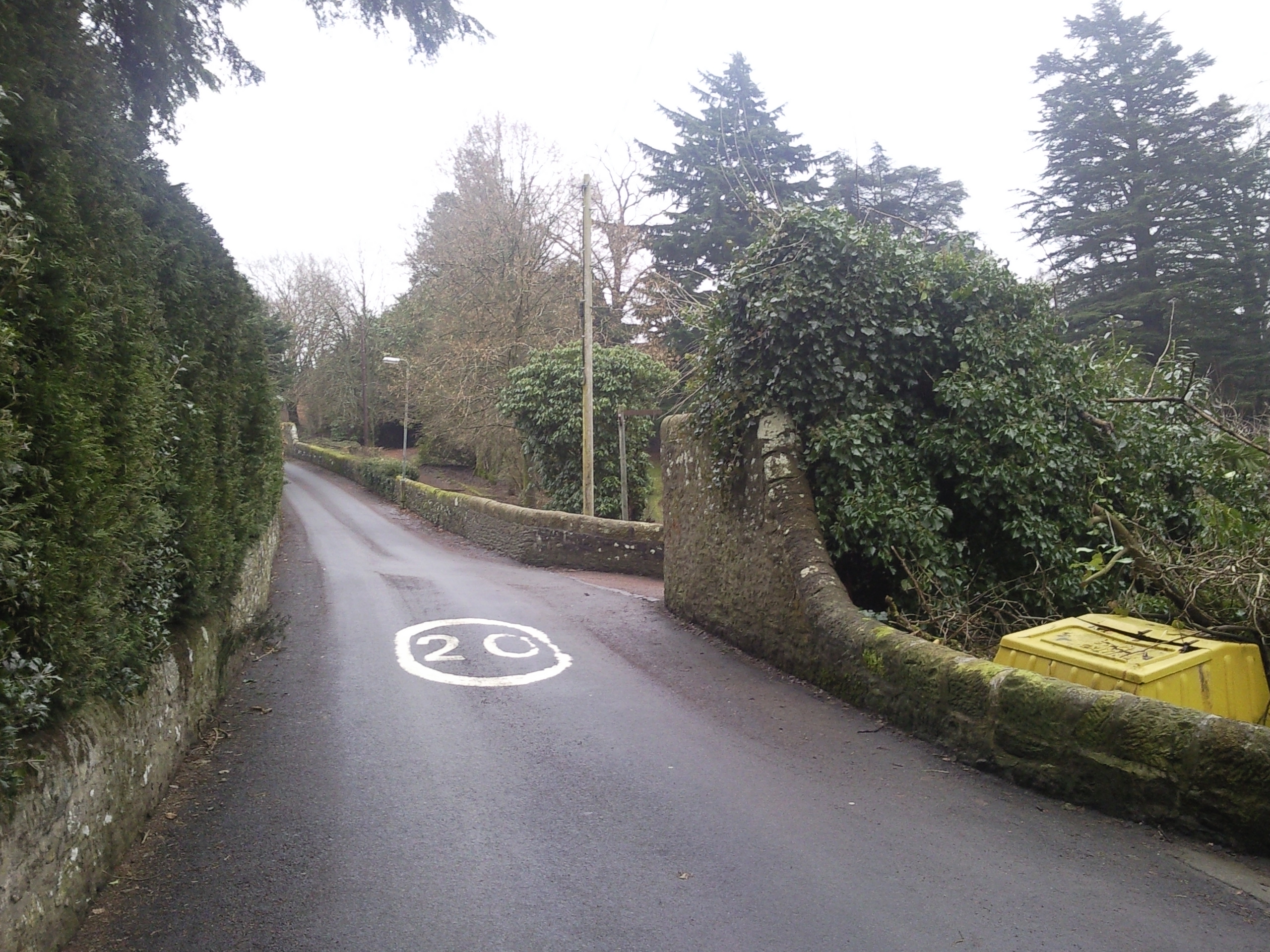 Ignore the PRIVATE PROPERTY CCTV sign on the gate, however please close the gate behind you (picture above). Follow path between houses, around waterworks and leading to St Patricks Rd. Follow road up at Jookers Johnnie, Turn Right at 20mph sign on road (picture below)