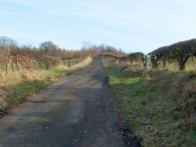 Pass under the West Coast Main Line and keep to the main tarmac track (picture below) up to a kissing gate and Blantyre Farm Road B758. TAKE CARE crossing into wooded area opposite.