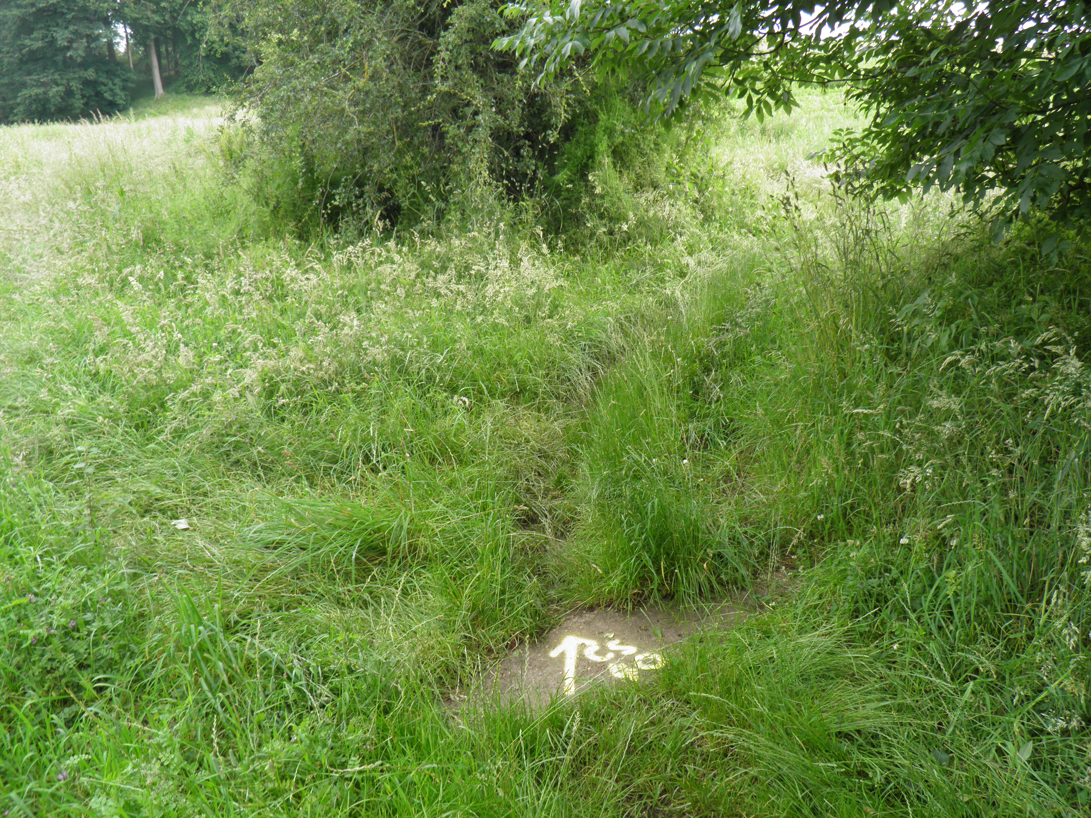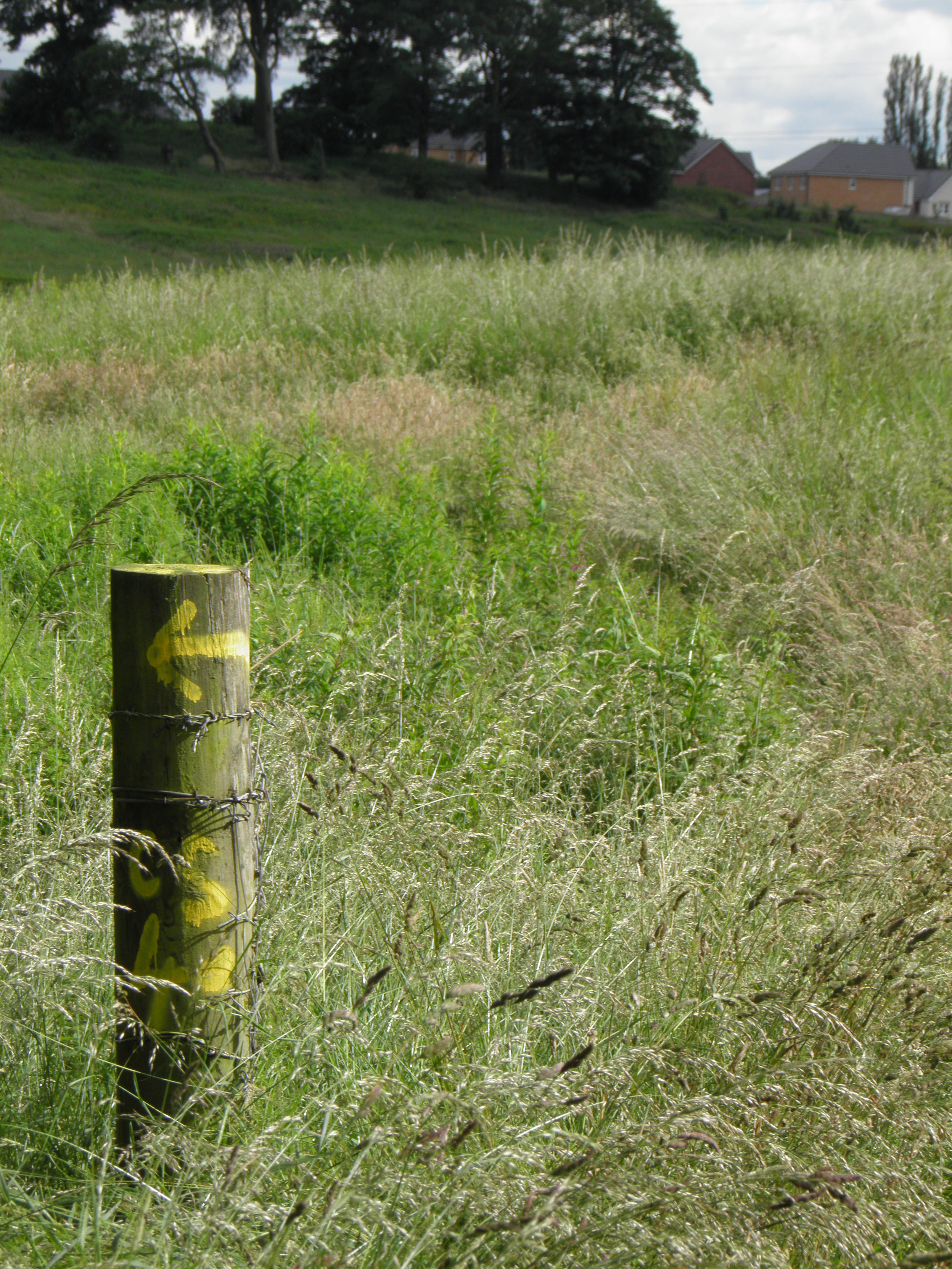 TAKE CARE and cross directly opposite (picture below). Follow grass track on left.